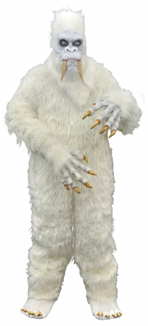 Quality Yeti costume with long fangs over the head latex mask matching cloth suit latex hands and feet. One size fits most adults up to 6′ tall and 220 lbs. Costume is machine washable, cold gentle cycle, tumble dry low. No Ironing or Bleach. 80% Acrylic, 20% Polyester!