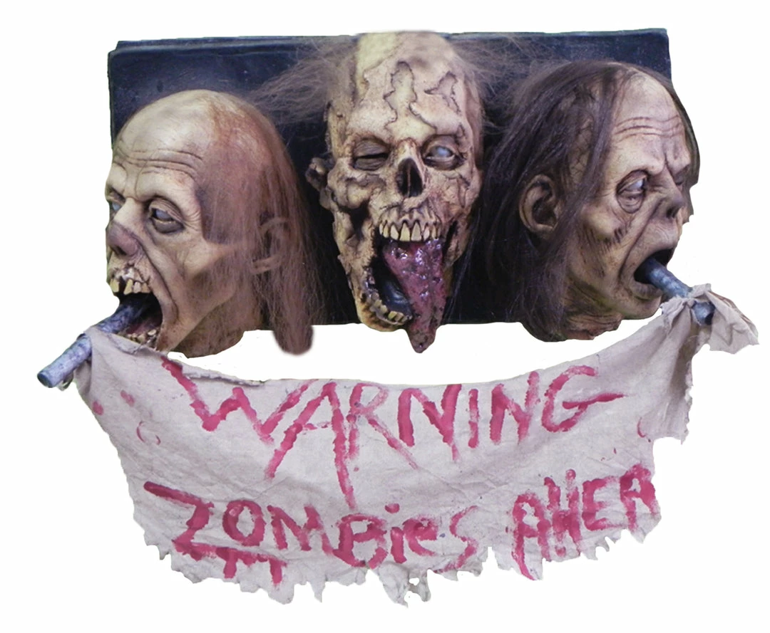 The zombie wars are on!! With every turn you make you could be running into a brain eating zombie! Luckily someone has posted a inchesWarning Zombie Ahead inches sign. They’ve be to also include three decapitated lifelike heads… just so you get the point! This two foot wall hanging is three dimensional and the rotting remains are sculpted with incredible detail. This is A MUST for any haunt or Zombie party! It will scare and amuse even the bravest of Zombie hunters! 2 feet long x 8 inches deep. Item comes with a wire on the back for hanging.