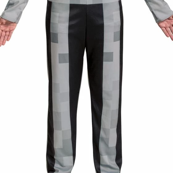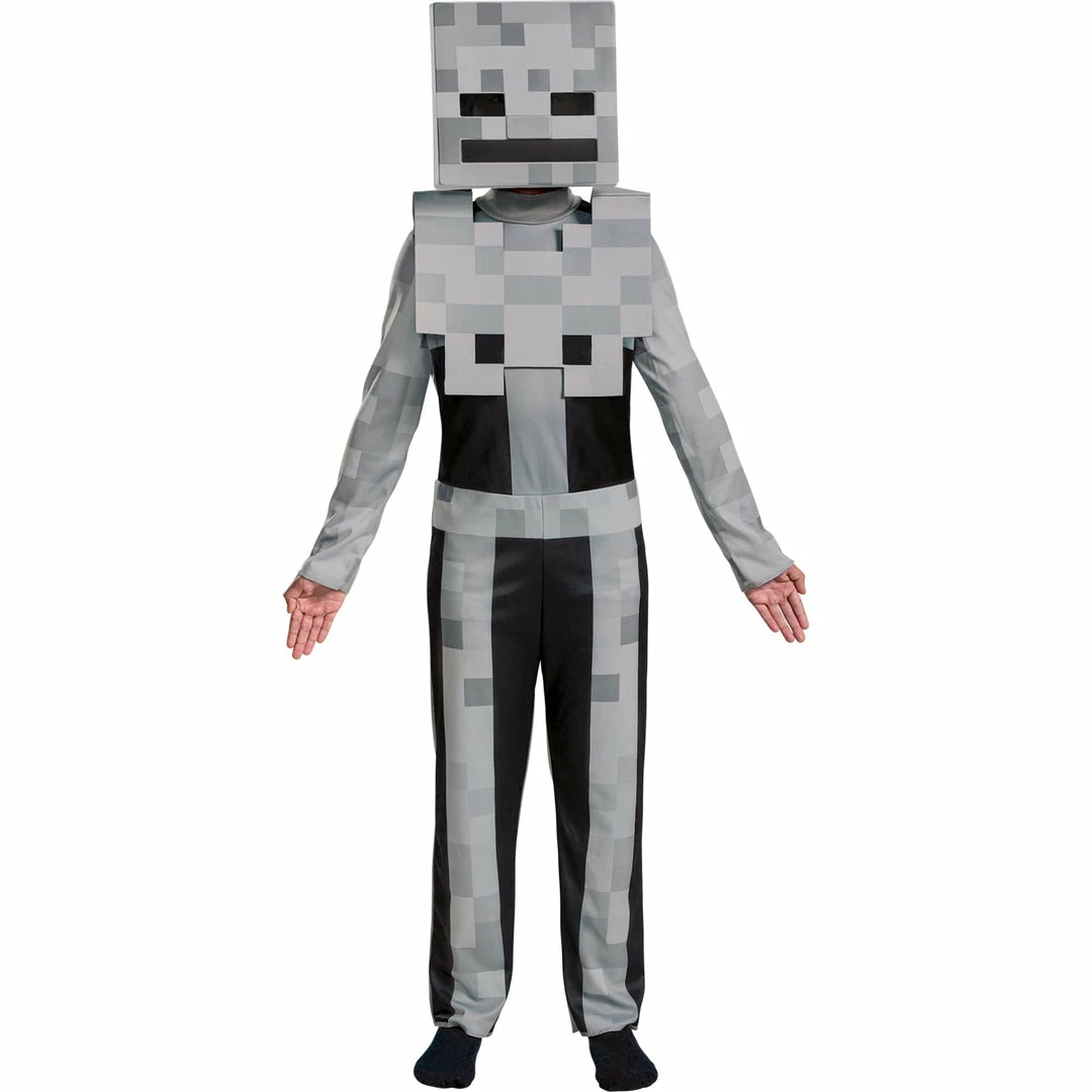 Spawn in the darkness dressed in this scary skeleton suit. You?ll look just like an undead mob character from your favorite video game, Minecraft. Grab some friends to go as Creeper, Zombie, Spider and Enderman! The Minecraft Skeleton Classic Child costume features a gray jumpsuit with detachable pixelated chest piece and character half mask. Socks not included.