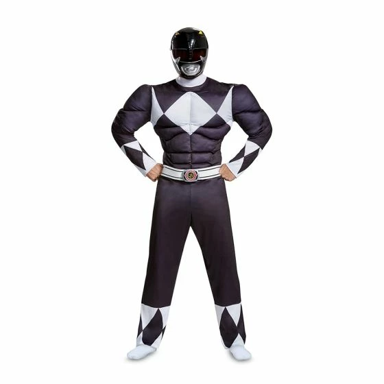 From the hit television show, Mighty Morphin Power Rangers, this Black Ranger Suit and Mask will transform you into your favorite hero. Unite with your other Mighty Morphin Power Ranger friends to take on the evil forces such as Lord Zedd, Rita Repulsa, and Master Vile. The Power Rangers Black Ranger Classic Muscle Adult Costume features a black jumpsuit with white diamond print pattern, muscle torso, muscle arms, attached belt, belt buckle and helmet with black visor. Socks not included.