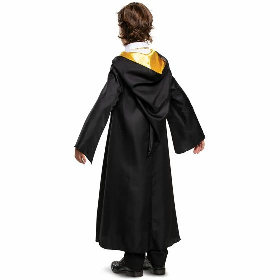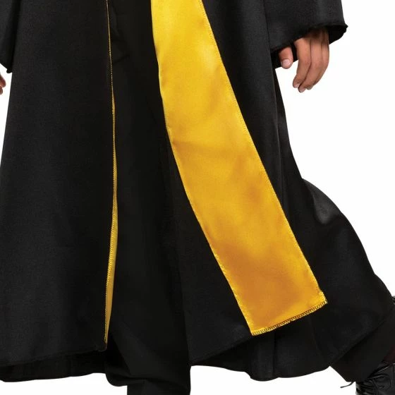 Create a truly magical experience when you step out into the wizardly world dressed in the Child’s Hufflepuff Deluxe Student Robe. Now you can dress as a student of the Hufflepuff house known for honesty, dedication and hard work. in this enchanting costume. Grab your magic wand and transform into your favorite Hufflepuff student Nymphadora Tonks or Cedric Diggory. The Harry Potter Child Deluxe Hufflepuff Robe features a black robe with the Hufflepuff crest, yellow satin lined hood and yellow satin lined lapels. Pants, white shirt, tie, wand and shoes not included.