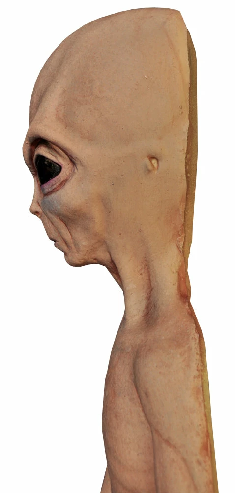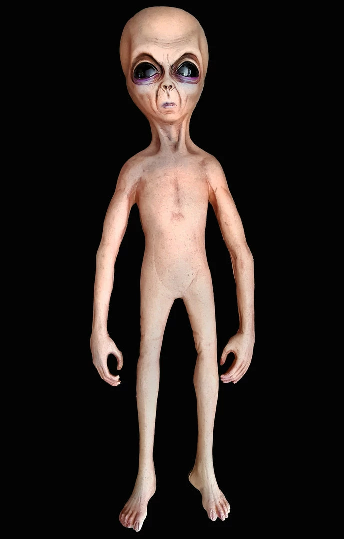 Our high quality life-sized Alien Prop is 4 1/2 feet tall and is hand painted with a realistic look. These alien props are made of latex and foam filled to allow them to be repositioned to pose in various scenes. Create a creepy sci-fi scene or use our alien as a Halloween prop to decorate your home, yard, or for a party. Although these aliens are out of this world many people enjoy posing with them in photos here on Earth and love creating funny scenes at home, in businesses, parties, in the car, at the beach and even dress them up!