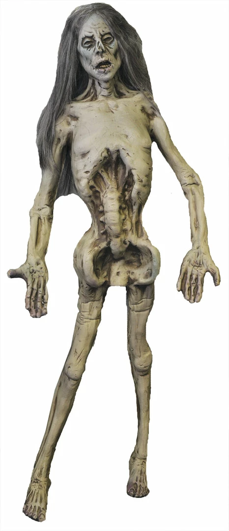 Flat back female corpse. Made of latex and foam this female corpse prop also has a bendable wire armature in the arms and legs so that it can be posed. Perfect corpse for Haunted attractions, home haunts, retailers, and Halloween parties. Pictured sitting in the middle. Pictured standing on the left