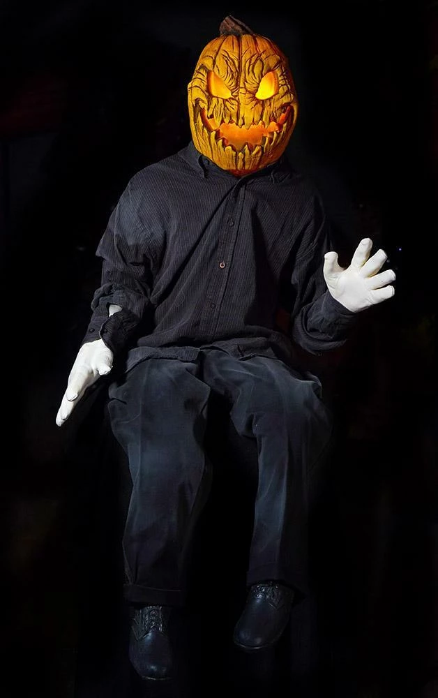 Halloween Scarecrow is a bendable body halloween prop with a flickering light in its Jack O Lantern head. Cool classic Halloween prop over 5ft tall! Foam filled latex with wire armature in it. Great for the porch, yard haunt, haunted corn maze, haunted house, or for use as a Halloween decoration. Clothing may vary.
