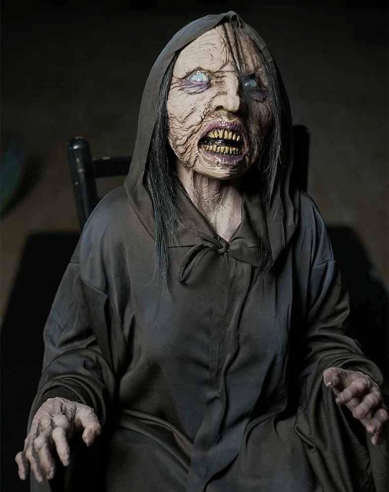 Wicked Frightronics prop is an animated electric witch that rocks back and forth. Comes with audio track. Add your own rocker! Perfect for the professional haunted House, Home Haunts or add to your Halloween decorÂ