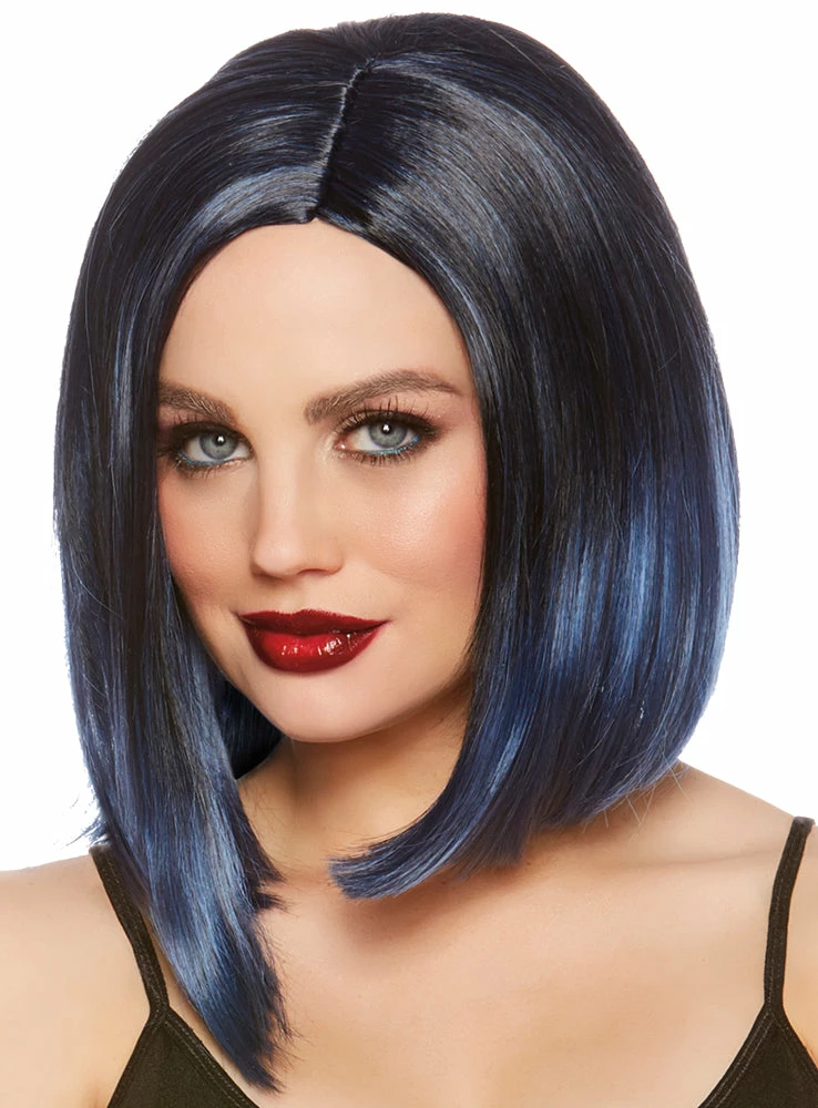 Get the sparks flying in this long bob styled wig! Coming from the 70’s disco and 80’s rocker era, this wig is a new take on throwback style. Sleek and straight hair falls above the collar bone in black and blue ombre. With an adjustable inside strap, a perfect fit is ensured for most adults. No matter what you chose to wear with it, you will always be left with an with endless variety of uniquely surprising style that suits most any needs.