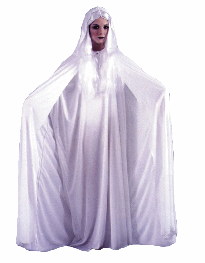 68 inch long poly-cotton cape with hood has tie closure. Measures 47 inches from the shoulder down. The 68 inches is from the top of the hood to the hem.