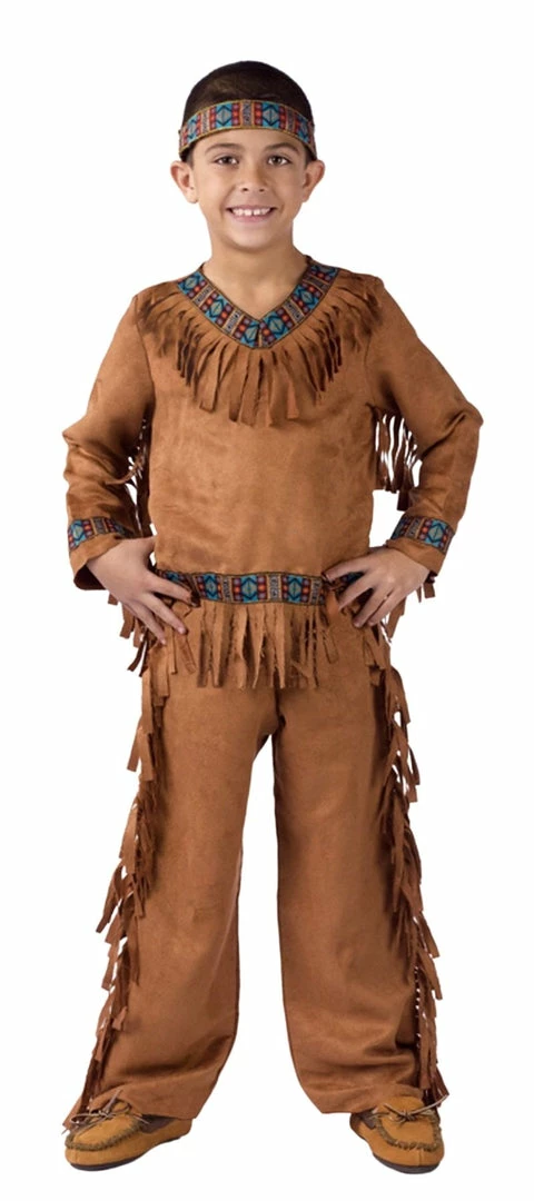 Suede look fringed top and pants with ribbon trim and headband.