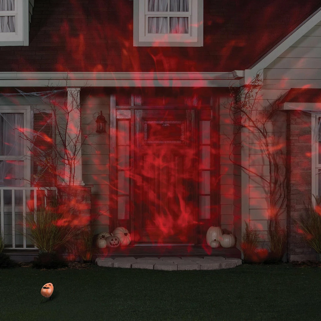 Turn up the heat instantly with a vibrant light featuring a blazing flame effect from this amazing LED projection light. Just stake it into the ground, plug it in and point it at your wall, garage door, fence, or any other flat surface. Use it on indoor or outdoor surfaces, including exterior or interior walls, living spaces, front doors, porches, garage doors, fences, trees and shrubs. Perfect for indoor or outdoor Halloween decorations, parties and celebrations, or creating a dramatic focal point.