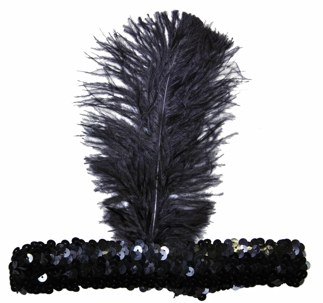 Stretch sequin headband with single feather. The ideal 20s, headpiece.