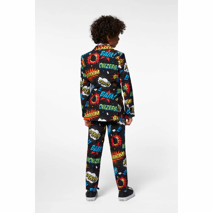 Badaboom badabeng. Kids only use tablets and phones these days but we know that comic books will never run out of fashion. Even the littles of kids will want to wear this cool comic book patterned suit.