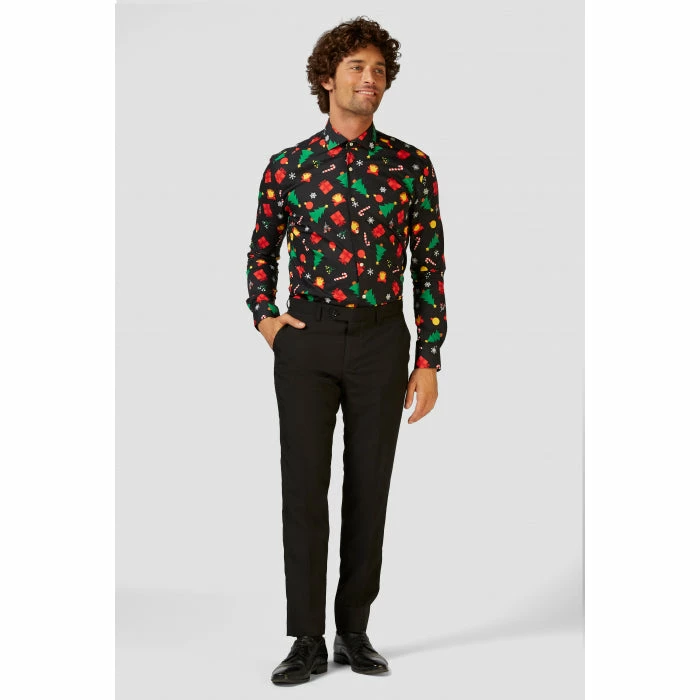 Feel the festive spirit this Christmas Holiday Season this Christmas long sleeved shirt. A classy, fun shirt for those men that really don’t take life to seriously. The Holiday’s are one of the happiest times of the year so join in and have some fun, wear with one of our suits, dress up with a tie or wear casually, either way you will be sure set off that holly jolly sparkle.