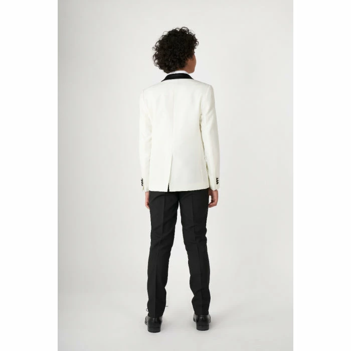 An off-white tuxedo jacket is one of the most elegant options for formal wear. No matter how old you are, they will always give you an unmistakably classy look. Paired with black double-pleated tuxedo pants and a bow tie, you’ll be the most stylish teenager at the next family celebration, hands down.