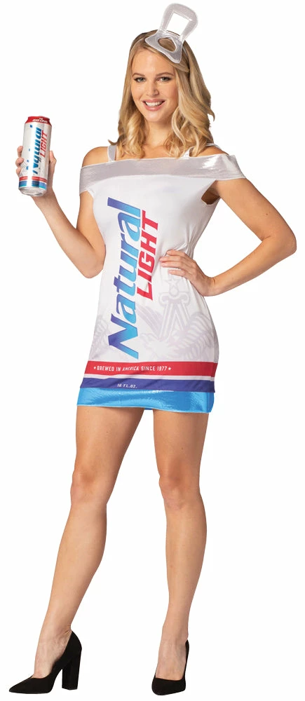 Natural Light, your favorite beer is now your favorite 21+ Halloween costume, and it’s time to party! Wear your Natty Light Can Dress costume every day, but make sure you wear it on October 31st. Printed on the front and back. All Spandex construction with extra elastic on back allows for appropriate fit. Off the shoulder design with spaghetti straps is flirty and fun to wear all night long. See Size Chart and additional photos for choosing best fit for you. Natural Light Costumes are party starters, so grab your besties and be a six pack, 12 pack, or better yet, a full case! Remember, have fun as you dress responsibly this Halloween! For Adults 21+ only.