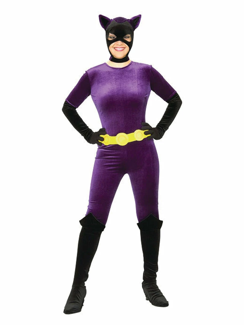 From the popular TV show about the adventures of the female superheroes and supervillains of Gotham City. Quality stretch velvet bodysuit gloves belt and cat ear headpiece. Trademark and Copyright of DC Comics. Polyester.