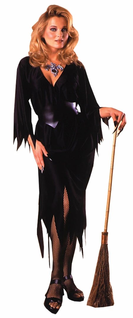 Black nylon dress with jagged sleeves and hemline. Fits most women up to size 12. Broom (MR122642) sold separately.