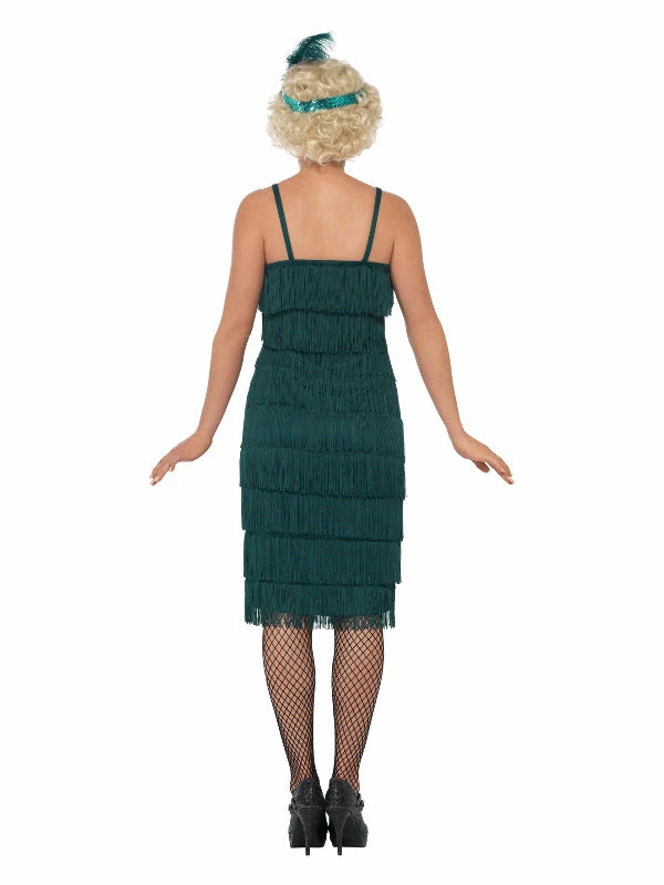 Flapper Costume, Teal Green, with Long Dress, Headband & Gloves