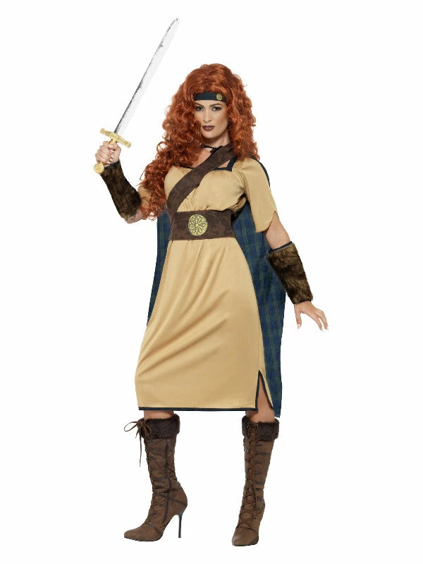 Deluxe Warrior Queen Costume, Beige, with Dress, Cloak, Headband, Belt & Cuffs