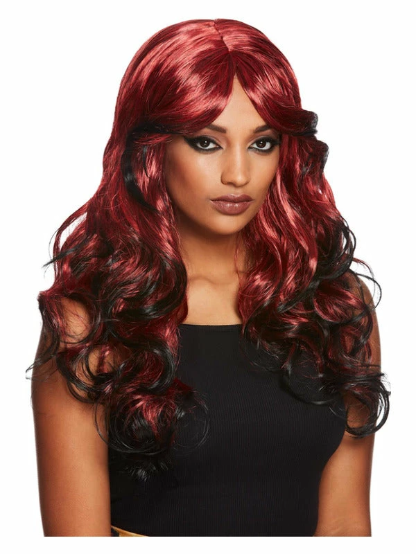 Gothic Temptress Wig, Black & Red, with Fringe