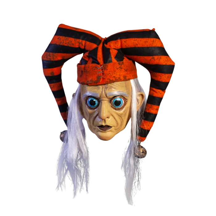 Officially licensed Sad Trickster Mask from the horrifying film, The Terror of Hallows Eve. If you’ve grown tired of all the regular maks and looks, you can use this great new Sad Trickster Mask to revitalize your Halloween feels while also scaring everyone you know at the same time! This amazing mask was cast directly from the screen used mask and includes the attached hat and bells which came from the screen used patterns and are made with the same canvas materials.