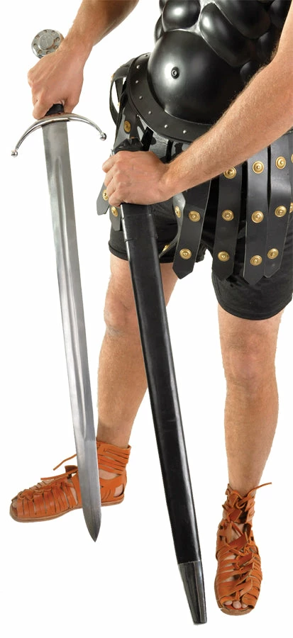 The lords and knights from the mid to late 15th century often favored a single-hand cut & thrust sword of elegant design such as this elegant replica. Includes matching black scabbord with silver colored tip. Silver sword 38 inches.