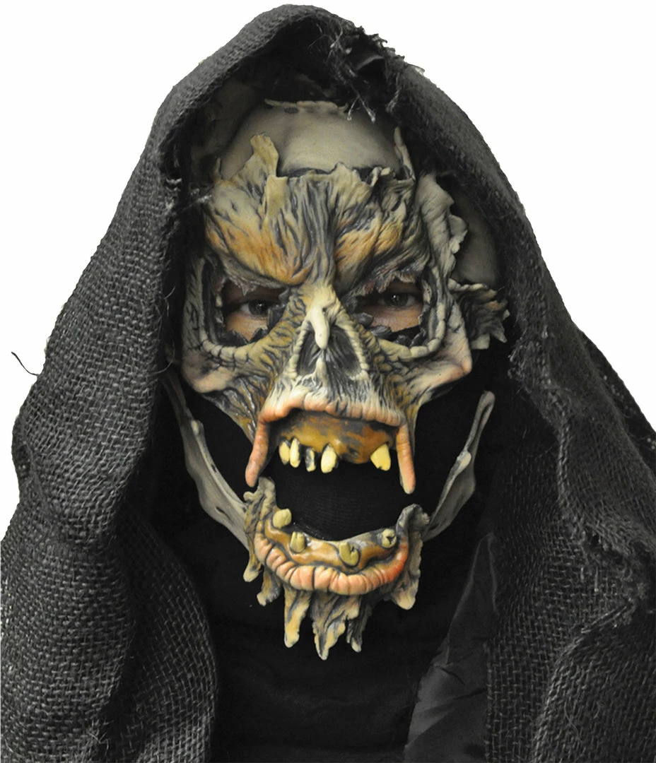 Rotting decayed latex mask with moving jaw. The original Be Something Studios Decayed Halloween Mask on a head sock.