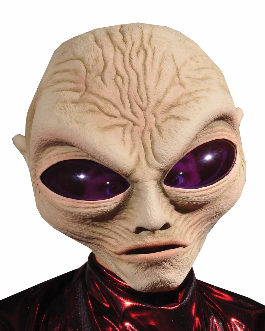 A classic alien character in the traditional grey alien finish with foam insert for amazing comfort and fit in a large profile latex mask. Full over the head mask. Mask openings: nose, mouth.
